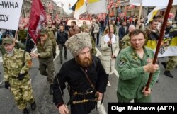 Слева в кадр попал фрагмент лозунга “Матильда – пощечина русскому народу”.