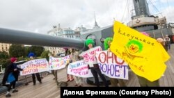 Активисты "Клоунского государства" забрались на Аврору с антивоенными плакатами