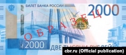 Банкнота номиналом 2000 рублей ​выполнена преимущественно в синем цвете. На ее лицевой стороне изображен мост на остров Русский, на оборотной – космодром Восточный в Амурской области. Оптически-переменный защитный элемент выполнен в виде стилизованного изображения моста на фоне солнца.