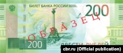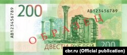 На банкноте 200 рублей изображены памятник затопленным кораблям в Севастополе, в аннексированом Россией Крыму. Основное изображение оборотной стороны банкноты – историко-архитектурный музей-заповедник "Херсонес Таврический".
