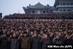 В КНДР прошли массовые демонстрации в поддержку новогоднего обращения Ким Чен Ына, в котором тот рассказывал о ядерной кнопке.